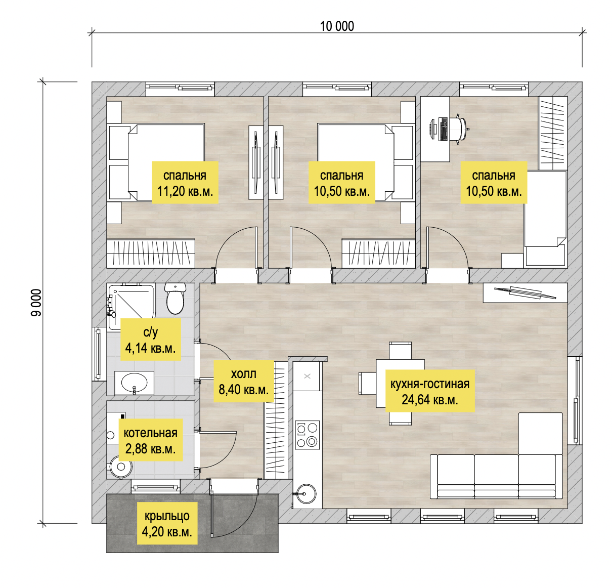 - отопление комбинированное (радиаторы и теплый пол со стяжкой)